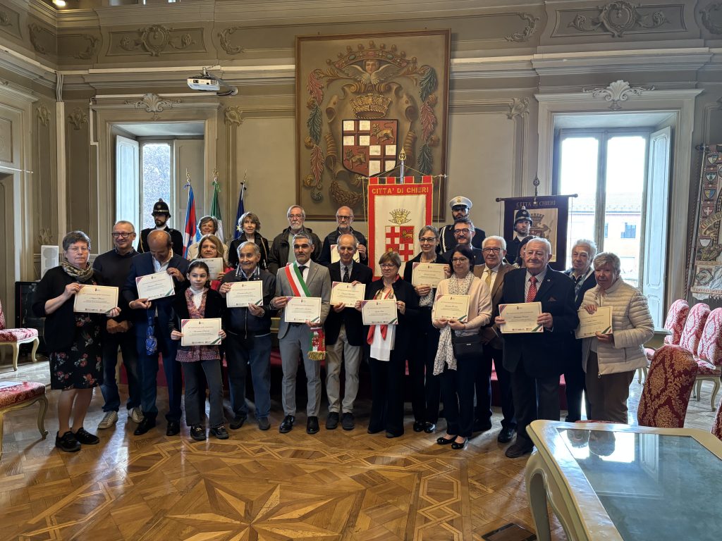 Sì è tenuta questa mattina in Municipio la cerimonia denominata Sentinelle della Repubblica durante la quale – in collaborazione con l’istituzione regionale – sono state consegnate pergamene ricordo ai sindaci o ai loro famigliari succedutisi dal 25 Aprile 1945 ad oggi alla guida della città di Chieri. Hanno ricevuto il riconoscimento i famigliari di Angelo Menzio, primo sindaco dopo la Liberazione, seguiti da quelli di Giuseppe Franco, Secondo Caselle, Giovanbattista Bruno, Giuseppe Manolino, Egidio Olia, Giuseppe Berruto, Giulio Rocco, Germano Patrito. Erano invece presenti gli ex sindaci Aldo Vergnano, Agostino Gay, Francesco Lancione, Claudio Martano.