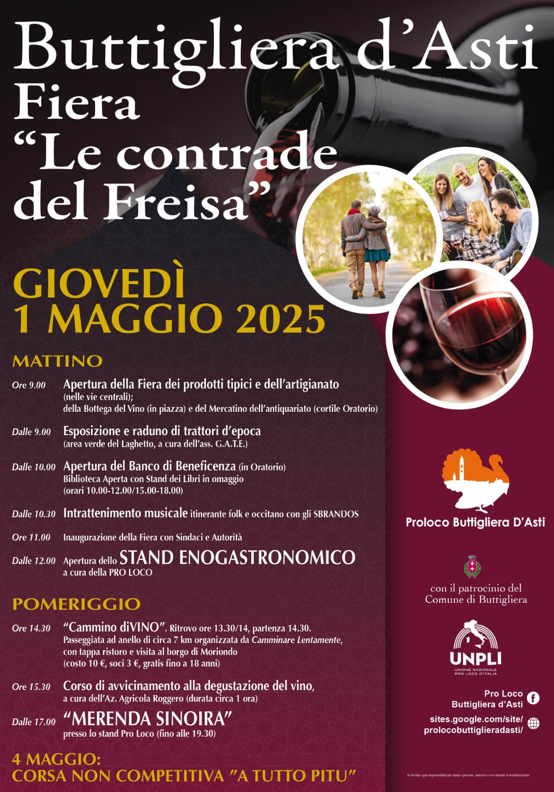 BUTTIGLIERA d’ASTI. Giovedì 1° maggio fiera “Le contrade del FREISA”