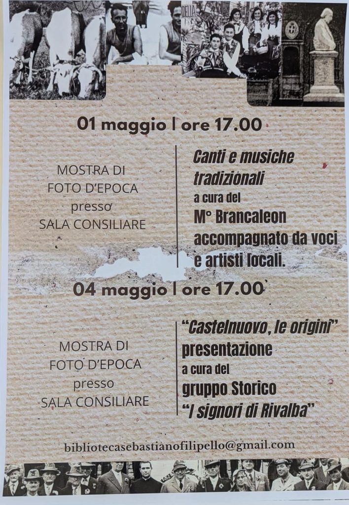 CASTELNUOVO DON BOSCO. Giovedì 1° maggio “Canti e musiche” domenica 4 maggio “Castelnuovo le origini” nella sala consiliare.