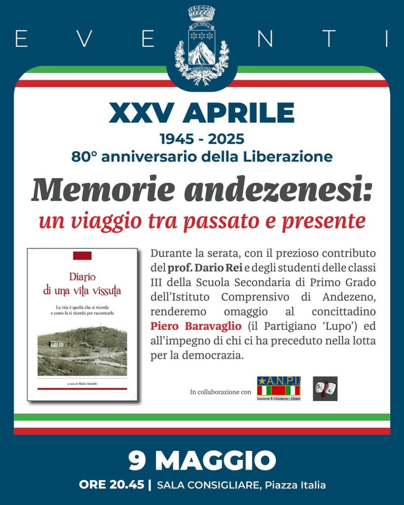 Andezeno. Per gli 80 anni della Liberazione una serata di Memorie andezenesi di Redazione · 1 Maggio 2025 Visto da: 158