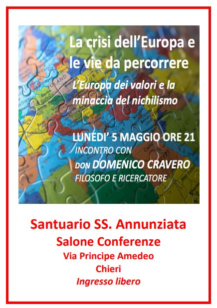 Chieri. Santuario Annunziata. 5 maggio ore 21 conferenza “La crisi dell’Europa”