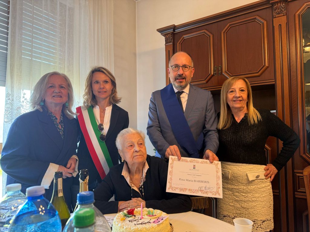 Rina Maria Barberis, classe 1925, è la nuova centenaria del progetto “Patriarchi dell’Astigiano”. Nata a Bubbio ha trascorso gli anni della gioventù ad Acqui Terme per trasferirsi con il marito ad Asti nel 1946. Dal matrimonio ha avuto due figlie, oggi è nonna di due nipoti e bisnonna di altri due. Negli anni si è sempre occupata della famiglia ed oggi vigila sui nipotini senza rinunciare a qualche piccola passione, come il giardinaggio, i fiori e cucire. A consegnare la pergamena di centenaria nella sua abitazione sono andati il presidente della Provincia, Maurizio Rasero, accompagnato dal vice sindaco del capoluogo, Stefania Morra. Auguri!
