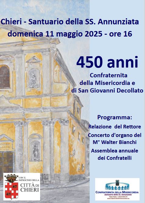 Il 2025 è un anno importante per la Confraternita della Misericordia di Chieri, che celebra domenica 11 maggio alle ore 16 la presenza attiva in Chieri da 450 anni con un incontro