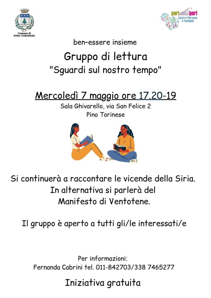 Pino Torinese. Mercoledì 7 maggio incontro del Gruppo di Lettura “Sguardi sul nostro tempo”