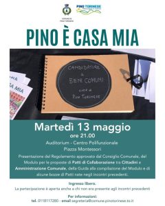 Pino Torinese. Martedì 13 maggio “Pino è casa mia”: incontro sul progetto “Beni Comuni”