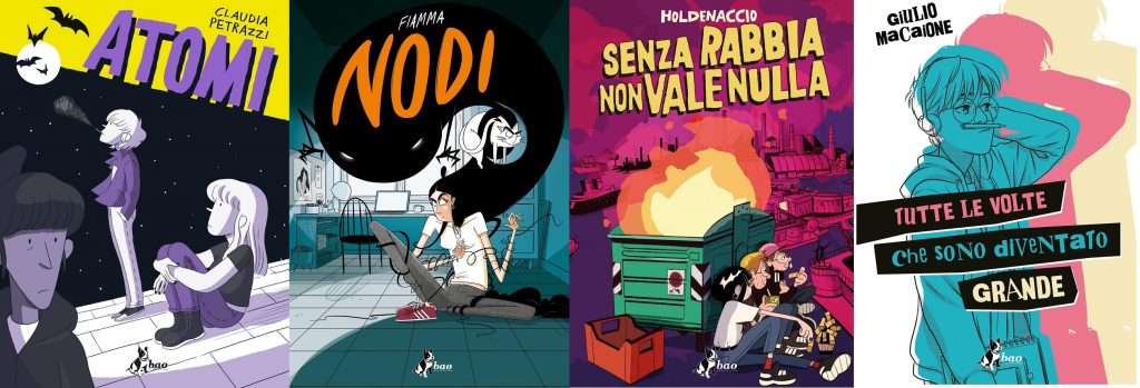 17:15-18:15 Ma parliamo di me (più o meno), raccontarsi a fumetti in un graphic novel, con gli autori BAO Publishing che presentano i loro ultimi lavori: Claudia Petrazzi (Atomi), Fiamma (Nodi) , Antonio “Holdenaccio” Rossetti (Senza rabbia non vale nulla) e Giulio Macaione (Tutte le volte che sono diventato grande)