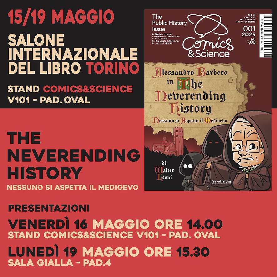 15:30-16:30 Pad. 4 – Sala Gialla: Comics&Science meets History. Il fumetto con protagonista il grande Alessandro Barbero, di Walter Leoni (Comics&Science)