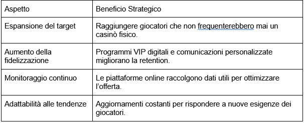 In un mercato in continua evoluzione, il digitale si conferma una scelta vincente per i casinò che vogliono innovare, crescere e soddisfare al meglio le nuove aspettative dei giocatori.