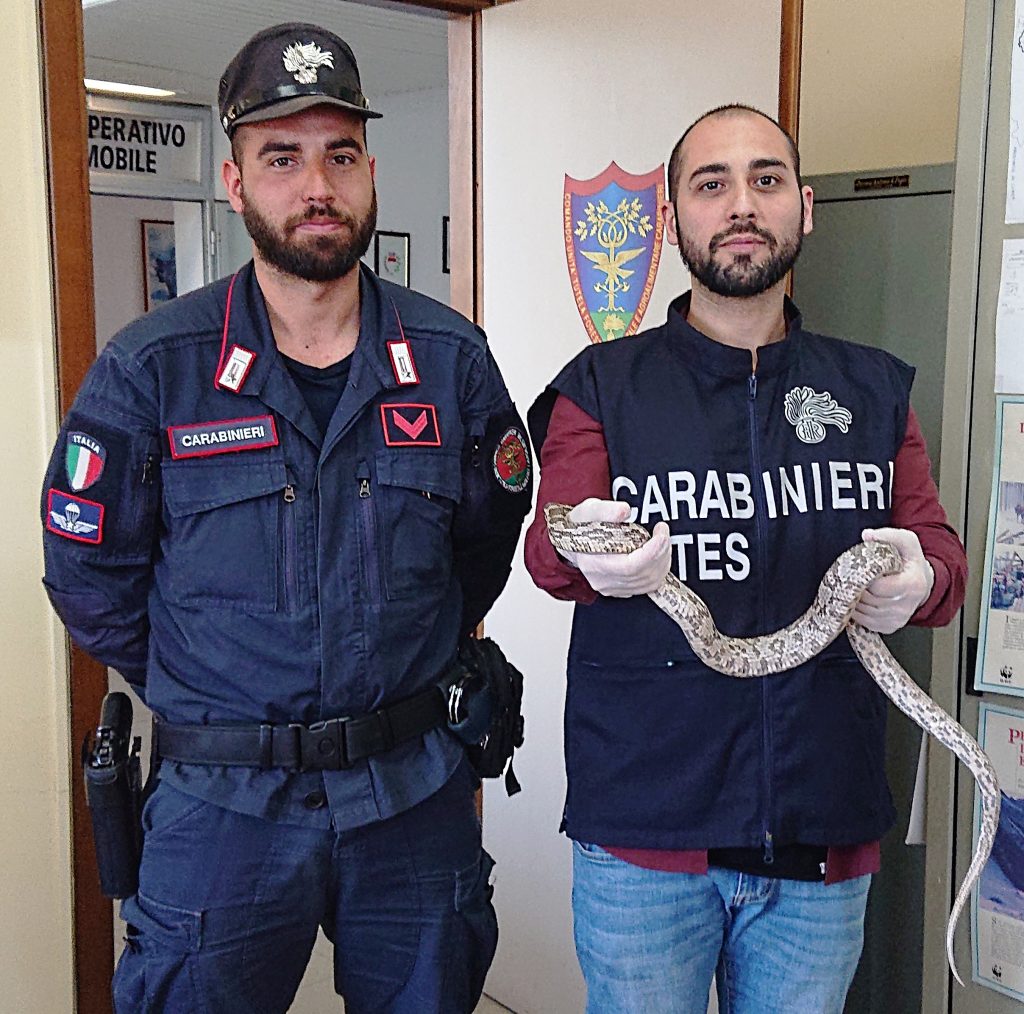 Acqui Terme – I Carabinieri del Nucleo CITES di Alessandria, coadiuvati dai Nuclei Forestali di Acqui Terme e di Nizza Monferrato, sono intervenuti a seguito di una segnalazione del personale dell’ASL sulla presenza di un serpente esotico nei pressi di un hotel della città della Bollente.
