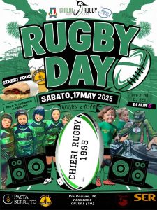 Sabato 17 Maggio ci sarà il Rugby Day, organizzato dalla società sportiva Rugby Chieri. In attesa di festeggiare a Ottobre i 30 anni dalla fondazione dell’ associazione sportiva.