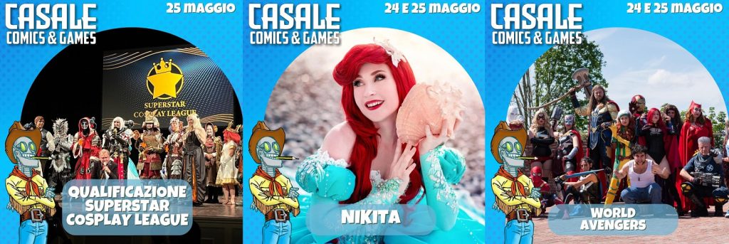 Il Castello del Monferrato di Casale ospiterà l’Area Cosplay, che avrà una sua sezione anche al Palafiere. Tra le associazioni presenti: World Avengers, Sailor Guardians, Galaxy Blades, Doctor Who Italian Fan Club, Hazbin Hotel Italian Cosplay, Italian Deadpool Army, Jedy Generation, Bullets and Bean, Scuola estiva di magia e stregoneria e Family Universe Heroes Cosplay.