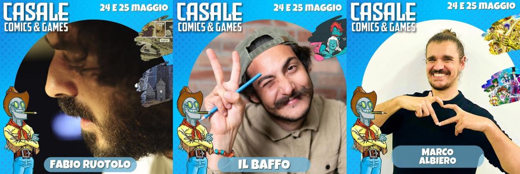Inoltre saranno presenti Fabio Ruotolo, già disegnatore degli ultimi due capitoli de I custodi del Maser (del compianto Massimiliano Frezzato), attivo in Francia sulle testate Heavy Metal, Journal Spirou e Métal Hurlant, attualmente al lavoro su un nuovo fantasy per Les Humanoïdes Associés; Giulio Mosca, in arte Il Baffo, autore di graphic novel per ManFont (La notte dell’oliva, Sublimi banalità quotidiane per persone blu, La fine del mondo di qualcun altro), Longanesi (Le poesie si possono disegnare) e Feltrinelli Comics (Clorofilla, Ossitocina e Salsedine. Storia di un burnout); e Marco Albiero, illustratore e fumettista per serie tratte dai cartoni animati, come Saint Seiya – I Cavalieri dello Zodiaco, Spider Riders, Tokyo Mew Mew, Mermaid Melody, Saint Seiya, Twin Princess, Gormiti, Blue Dragon, Tom&Jerry, Scooby Doo, oltre ad essere l’illustratore ufficiale delle Style Guide di Sailor Moon; Alessandro Locati, autore dei graphic novel La strada delle rondini (Shockdom) e Hikikomori – Il re escluso (Feltrinelli), in collaborazione con Maria Sara Mignolli; oltre a tantissimi altri autori di cui potete trovare l’elenco sul sito ufficiale.