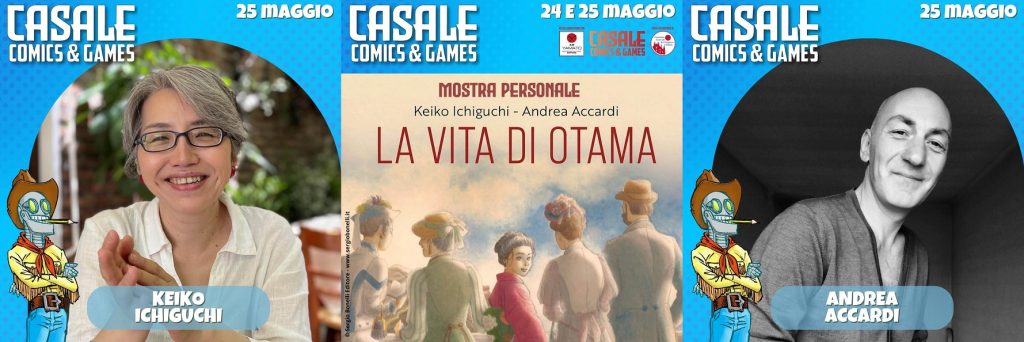 A Casale Comics & Games, nella giornata di domenica 25 maggio, saranno presenti Keiko Ichiguchi e Andrea Accardi, gli autori del graphic novel La vita di Otama, edita da Sergio Bonelli Editore. Il Chiosco Liberty (di fronte al Teatro) ospita un’esposizione di tavole originali tratte dall’opera, mentre i due autori saranno presenti nell’Artist Alley per i firmacopie e, presumibilmente (il programma definitivo verrà reso disponibile sul sito negli ultimi giorni), ospiti di un incontro.