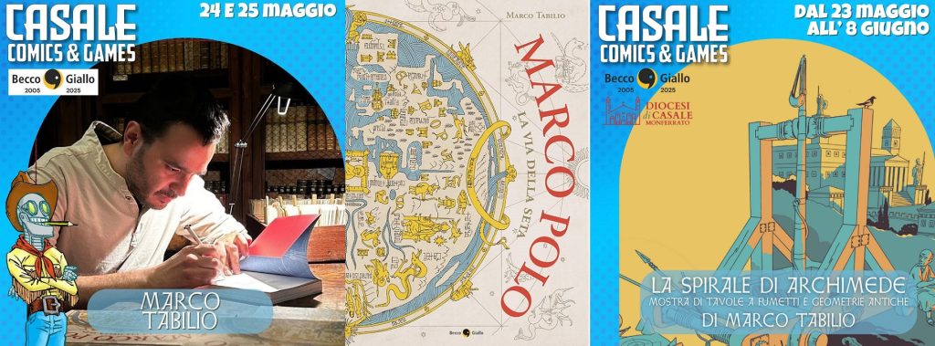 Un’altra personale è dedicata a Marco Tabilio – anche lui ospite della Artist Alley – autore dei graphic novel Marco Polo. La via della seta e Archimede. Geometria di un genio, entrambi editi da BeccoGiallo. La mostra verrà ospitata nella prestigiosa Biblioteca del Seminario, dove si potranno ammirare una selezione di tavole tratte dal graphic novel su Archimede – scritto da Roberto Monti, in collaborazione con il Dipartimento di Matematica dell’Università di Padova – esposte insieme ad antichi strumenti scientifici.
