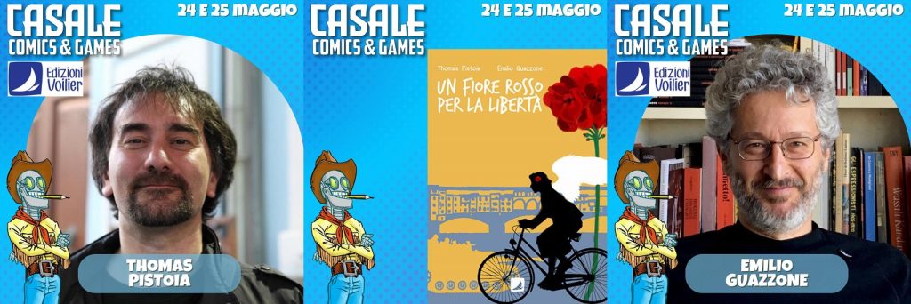 Allo stand Voilier Edizioni saranno presenti Thomas Pistoia (sceneggiatore di Nathan Never, Zagor e Diabolik) e Emilio Guazzone, autori del graphic novel Un fiore rosso per la libertà, opera intensa e poetica sulla Resistenza.