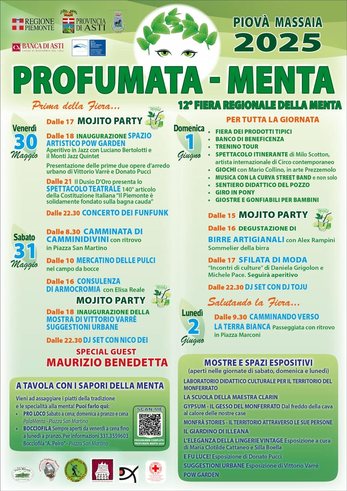 PIOVA’ MASSAIA. Dal 30 maggio al 2 giugno ” FIERA REGIONALE DELLA MENTA”.