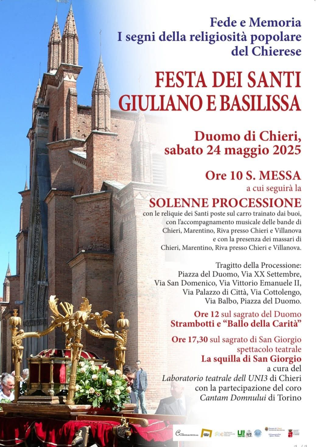 CHIERI. Sabato 24 maggio “Festa dei Santi Giuliano e Basilissa”.