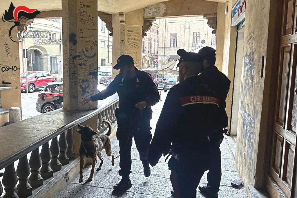 Novi Ligure. Controlli dei Carabinieri con i cani delle unità cinofile per la sicurezza urbana