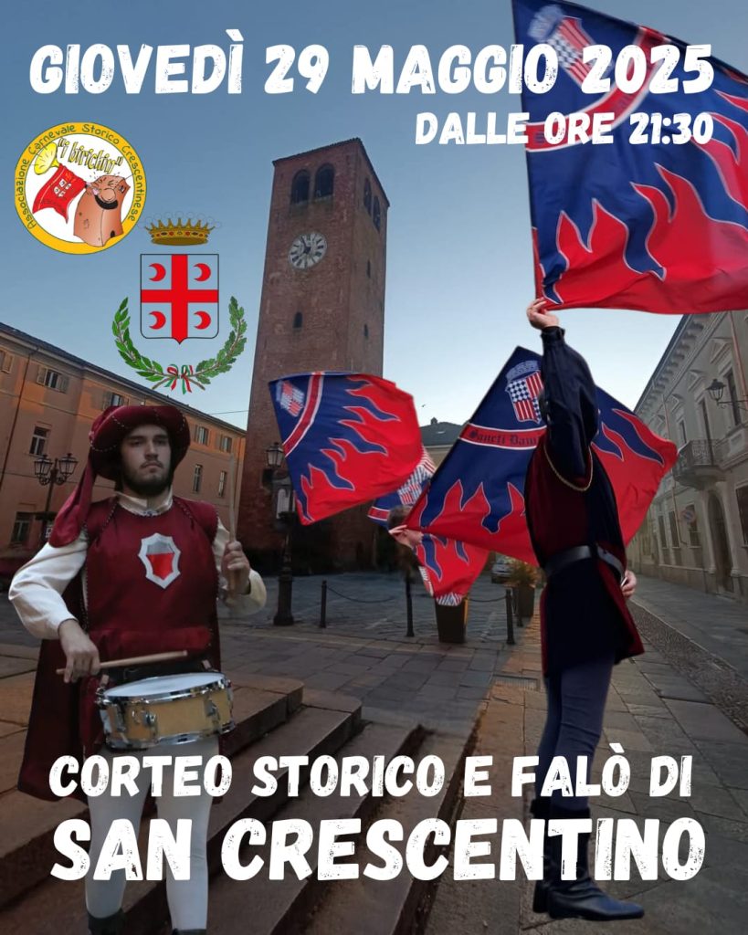 CRESCENTINO. Giovedì 29 maggio “Corteo Storico e Falò di SAN CRESCENTINO”.