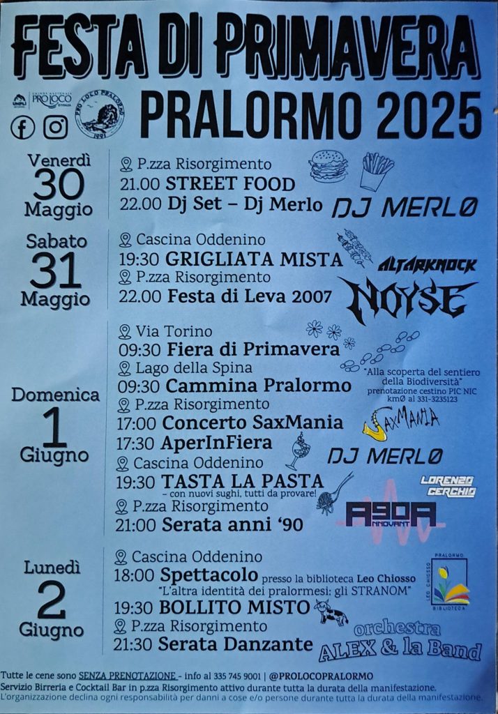 PRALORMO. Dal 30 maggio al 2 giugno “FESTA DI PRIMAVERA”.