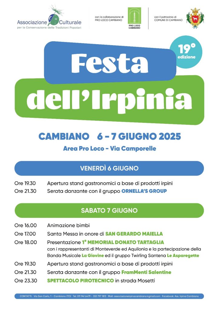 Cambiano. Festa dell’Irpinia il 6-7 giugno. Ecco il programma di Redazione · 31 Maggio 2025 Visto da: 964