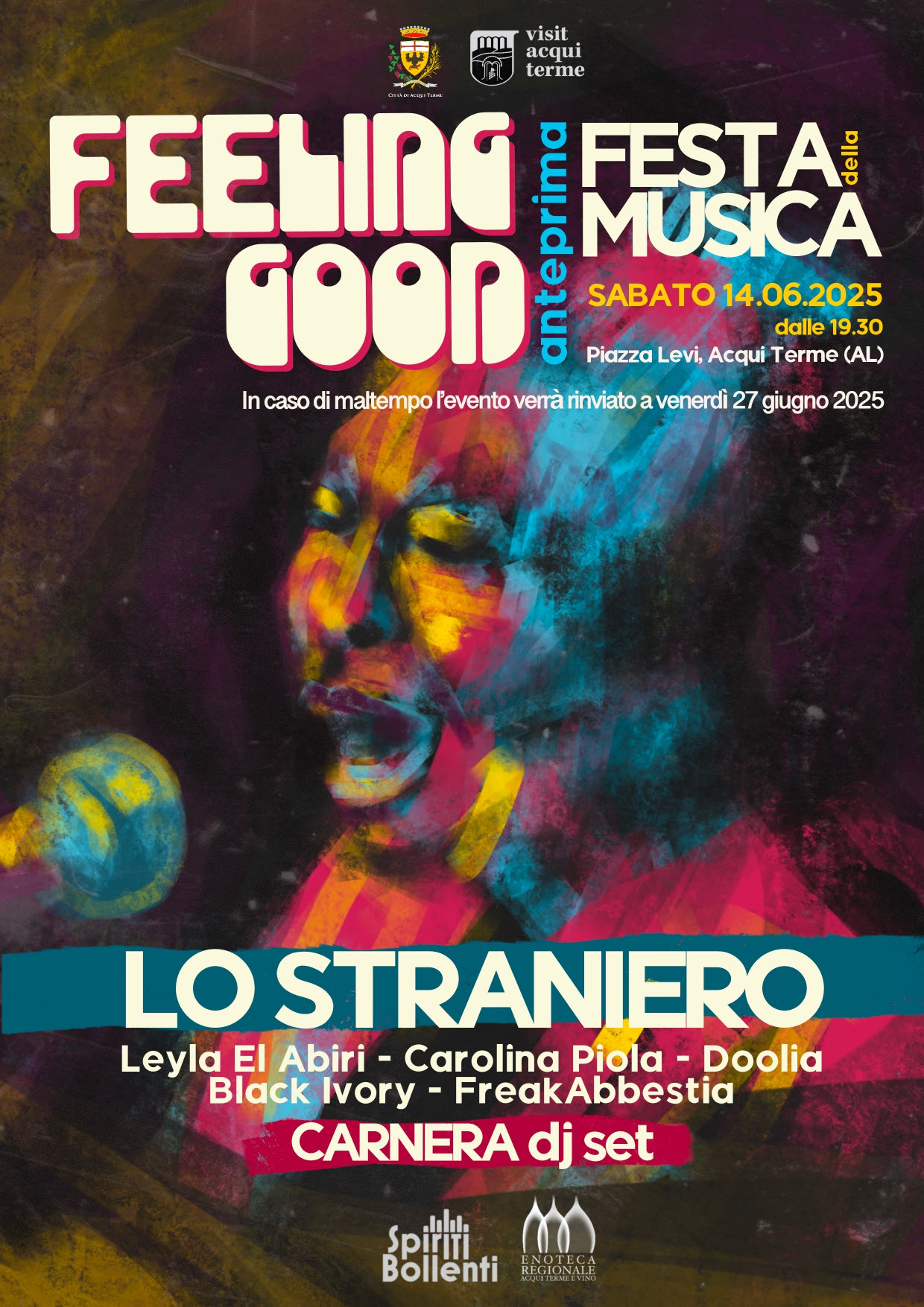Si terrà sabato 14 giugno a partire dalle ore 19,30 in piazza Levi ad Acqui Terme “Feeling Good – Anteprima Festa della Musica”, evento musicale organizzato dal Comune di Acqui in collaborazione con “Enoteca Regionale Acqui Terme e Vino” e con la direzione artistica a cura di “Spiriti Bollenti”.