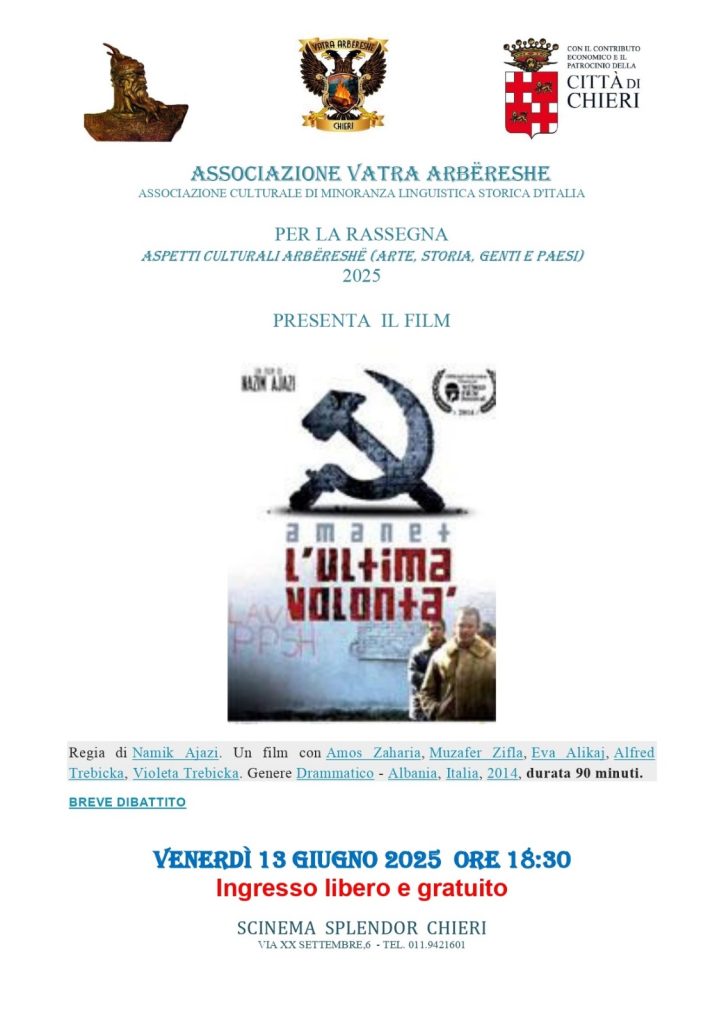 Chieri. Associazione Vatra Arbereshe, film con dibattito