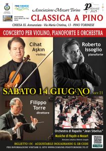 Concerto del 14 giugno – ore 21:00Orchestra di Rapallo “Jean Sibelius” con Cihat Aşkın e Roberto Issoglio.Chiesa SS. Annunziata, Via Maria Cristina, 13 – Pino TorineseBiglietto: 15 euroAcquisto online: https://www.clappit.com/biglietti/classica-a-pino-2025-14-giugno-2025-chiesa-parrocchiale-della-santissima-annunziata-pino-torinese-33130.html