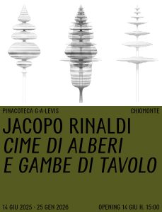 La Mostra Cime di alberi e gambe di tavolo, dell’artista Jacopo Rinaldi, a cura di ARTECO e CRIPTA747, si inaugura sabato 14 giugno 2025 dalle 15 alle 19, presso la Pinacoteca G.A. Levis di Chiomonte.