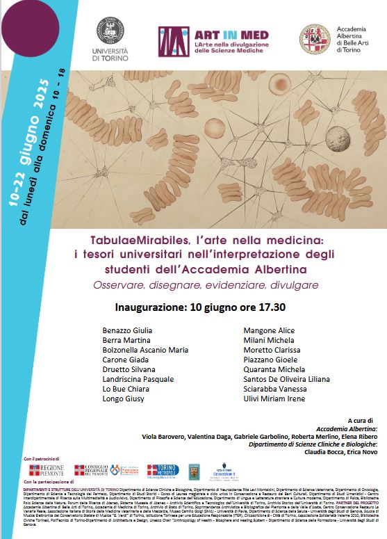 L’evento nasce dalla collaborazione fra il progetto di public engagement di Unito “ART IN MED:quando la scienza diventa arte” e l’Accademia Albertina di Belle Arti per far conoscere al pubblico l’immaginario scientifico delle tavole didattiche storiche di ambito medico e veterinario di Unito e suggestionare il visitatore attraverso i diversi linguaggi dell’arte, con le sue interpretazioni e possibili narrazioni.