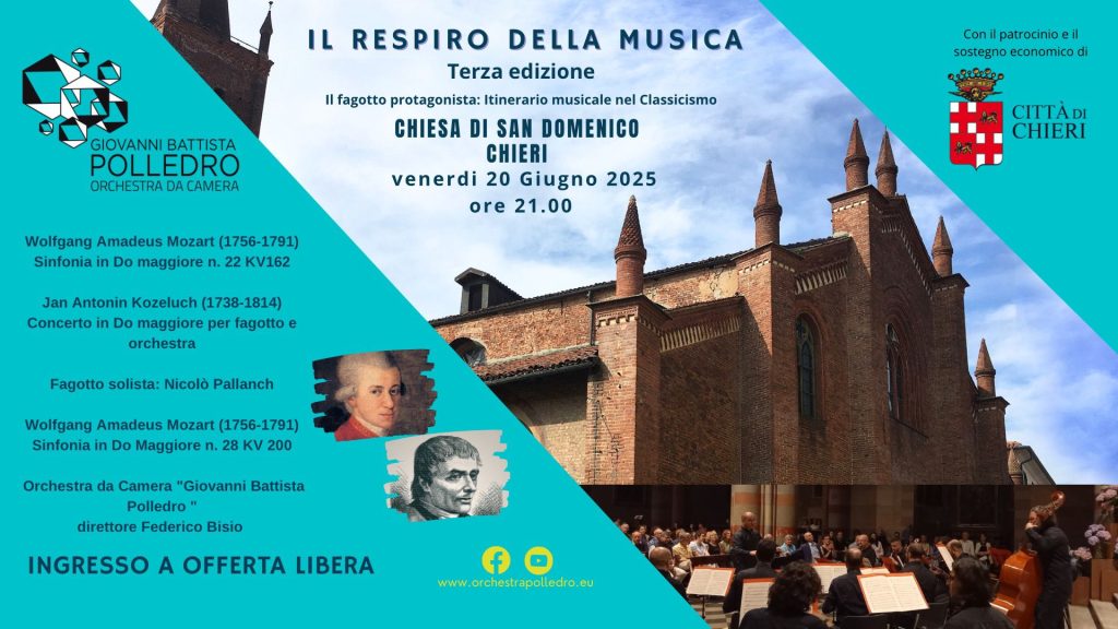 Anche quest’anno l’Orchestra da Camera Giovanni Battista Polledro sarà ospite a Chieri nell’ambito della terza edizione della rassegna “Il Respiro della Musica”.