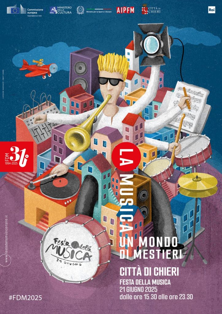 Sabato 21 giugno, a CHIERI si celebra la “Festa della Musica 2025” con un programma di nove concerti e due eventi collaterali ospitati in diversi punti della città (tutti ad ingresso libero). Dal 1982 il World Music Day è la giornata dedicata a promuovere la musica dal vivo, aprendo le porte a tutti i musicisti che si vogliono esibire, professionisti e non, in un caleidoscopio di tutti i generi musicali. Organizzata in più di 46 nazioni, in Italia la Festa della Musica è promossa dal ministero della Cultura in collaborazione con la SIAE (Società Italiana degli Autori e degli Editori).