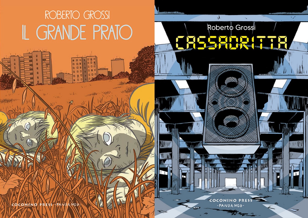 La grande rimozione è il terzo graphic novel che Roberto Grossi – architetto, illustratore e fumettista romano – pubblica con la Coconino Press, di cui consiglio vivamente anche Il grande prato (2017), intitolato al luogo da cui i protagonisti – due ragazzini gemelli che vivono in una baracca con lo zio alcolizzato – osservano una periferia urbana degradata, l’unica realtà che conoscono e con cui interagiscono. Sempre per Coconino, nel 2021 è uscito Cassadritta, il resoconto di un rave party degli anni ’90 del secolo scorso, un racconto collettivo i cui personaggi cercano la musica e inseguono il sogno di una libertà che forse non saprebbero nemmeno definire, in un mondo ancora romanticamente disconnesso.