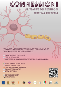 Alessandria si prepara ad accogliere “Connessioni – Il festival teatrale dei territori”, evento regionale che celebra il teatro amatoriale in tutte le sue forme, con l’obiettivo di valorizzare il patrimonio culturale locale, stimolare il dialogo tra realtà teatrali e istituzioni, rafforzare i legami tra comunità e territorio, è promossa dalla FITA Piemonte (Federazione Italiana Teatro Amatori) e organizzata da tre realtà attive nel panorama teatrale piemontese ovvero Compagnia Notte Magica da San Salvatore Monferrato, Compagnia Spasso Carrabile da Nizza Monferrato e Compagnia Gli Illegali – BlogAL di Alessandria, con il sostegno della Fondazione Cassa di Risparmio di Alessandria nell’ambito del bando Musica e Dintorni 2025; riconosciuta con il patrocinio della Provincia di Alessandria e della Città di Alessandria, si avvale del supporto del CSVAA Centro Servizi Volontariato Asti e Alessandria.