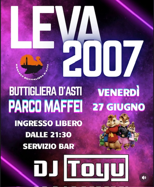 Dalle ore 21:30, il Parco Maffei si trasformerà in una discoteca a cielo aperto con la musica del DJ Toyu. L’ingresso è libero e il servizio bar sarà curato dalla nostra Pro Loco, per non farvi mancare nulla durante la serata. Un’ottima occasione per dare il via ai festeggiamenti in allegria e compagnia!