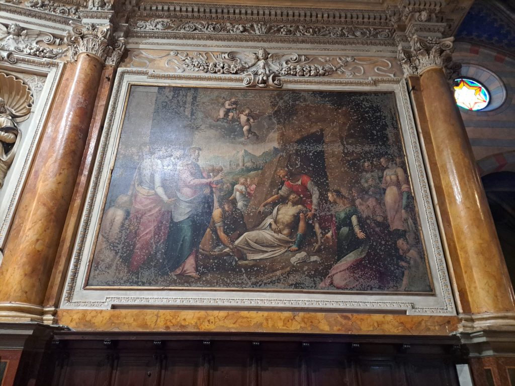 A Chieri, la chiesa di San Domenico tra i suoi tesori d’arte vanta da secoli alcune importanti opere di Guglielmo Caccia detto il Moncalvo. Una di queste, sulla parete laterale destra del coro, , raffigurante la scena della Risurrezione di Lazzaro, da mesi preoccupa per il suo stato di conservazione: strane macchie lo ricoprono in ogni parte e proprio su 100torri.it Antonio Mignozzetti, nel febbraio scorso, ne aveva parlato. Intanto, i Padri Domenicani avevano interessato del problema la Soprintendenza torinese. Adesso, un importante aggiornamento arriva proprio dal funzionario dell’ente preposto, David Lucidi. “La Soprintendenza se ne sta occupando perché l’opera è importante e va preservata. Si lavora per scoprire le cause del deterioramento: se l’evidente umidità arriva da dietro o da sotto o da sopra. Questo ci spiegherà come intervenire. Una valutazione accurata e un rapido intervento di restauro restituiranno senz’altro all’opera la sua bellezza.”