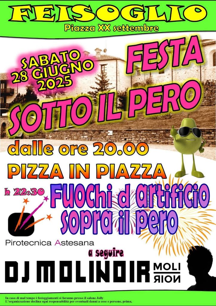 FEISOGLIO. Sabato 28 giugno “FESTA SOTTO IL PERO”