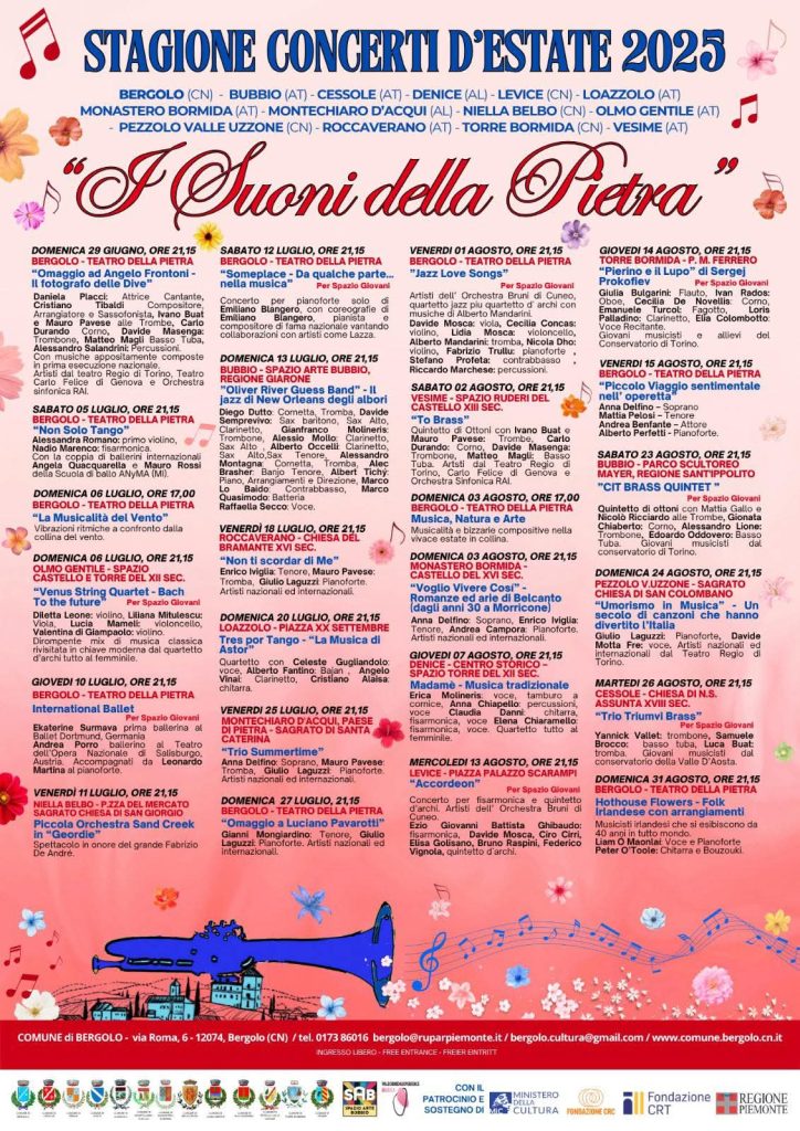 LANGA. Dal 29 giugno a domenica 31 agosto “I SUONI DELLA PIETRA” stagione di concerti d’estate in Langa.