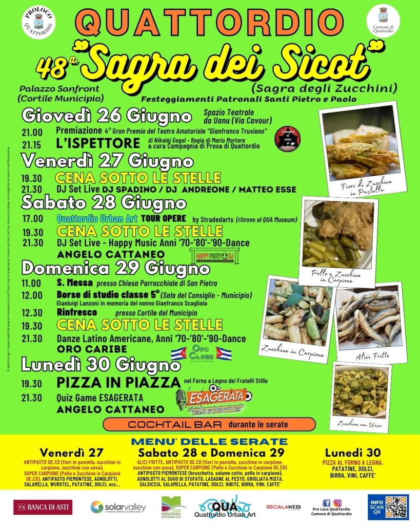 QUATTORDIO. Dal 26 al 30 giugno “Sagra dei sicot” sagra degli zucchini .