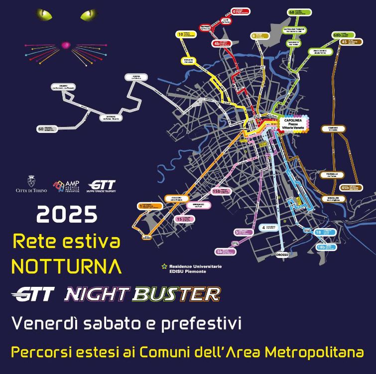 L’ampliamento del servizio è il risultato di una sinergia tra GTT, l’Agenzia per la Mobilità Piemontese e la Città di Torino, con l’obiettivo di rafforzare la mobilità serale e notturna nei mesi estivi e favorire una fruizione più ampia e accessibile delle occasioni di svago e aggregazione.