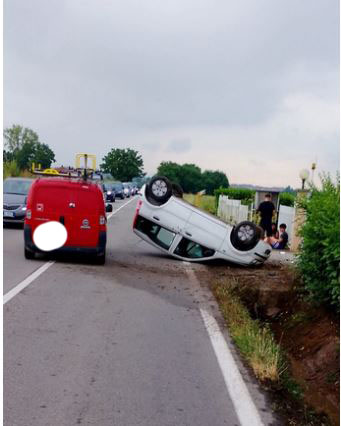 Mercoledì mattina a Cambiano, sulla provinciale per Chieri, una vettura fuori controllo che viaggiava in direzione Chieri è uscita di strada ed è finita nel fosso, ribaltandosi.