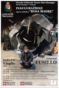 L’opera verrà inaugurata sabato 5 luglio alle ore 16:30 nel piazzale di Strada Stazione, a seguito della presentazione del progetto “Bricco San Martino” a cura del Sindaco Sandra Balbo e dell’opera artistica “Rosa Madre” a cura del Maestro Concetto Fusillo e del Professore Carlo Prosperi.