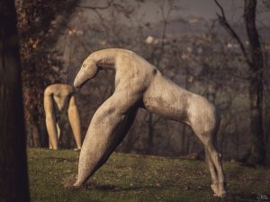 Omedé, nei suoi raffinati disegni e nelle sue sculture in vetroresina e terracotta, attinge la sua ispirazione dalla metamorfosi, un legame stretto tra gli esseri umani, il mondo animale e vegetale; un mondo metafisico e surreale che dialoga con i grandi maestri del passato e con i ricordi e le radici della sua infanzia restituendoci antiche suggestioni mescolate alle moderne inquietudini dell’uomo contemporaneo.