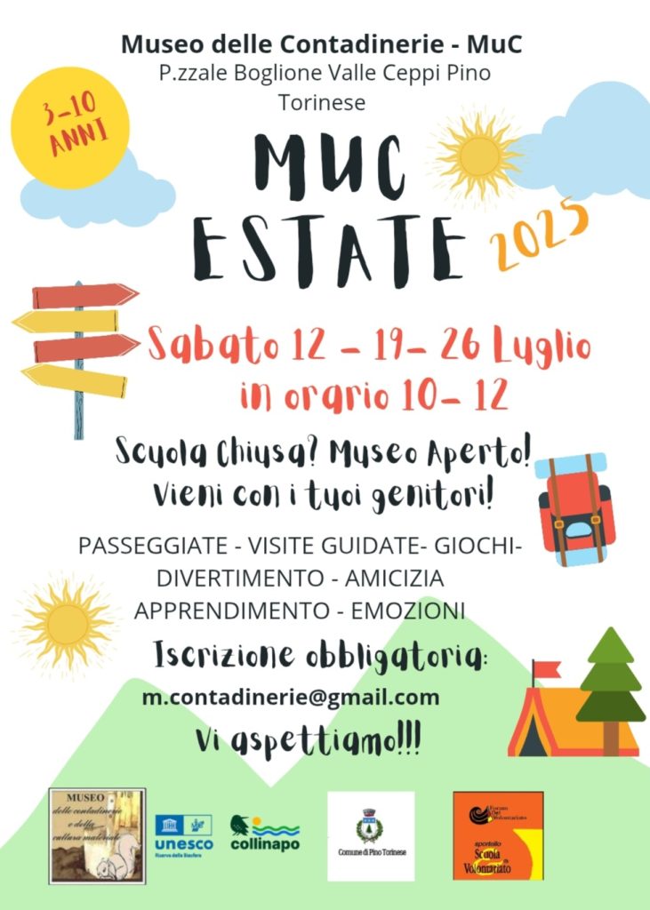 “Sei alla ricerca di relax, di aria fresca e di paesaggi immersi nel verde… lontano dal trambusto della città? Il Muc, immerso nelle verdeggianti colline pinesi, vi propone nei giorni di Sabato 12- 19 – 26 Luglio in orario: 10-12 passeggiate, visite didattiche, giochi per i più piccoli, escursioni nei dintorni e la scoperta di borghi caratteristici. La prenotazione è obbligatoria. Iscrizioni all’indirizzo e-mail: m.contadinerie@gmail.com Vi aspettiamo!”