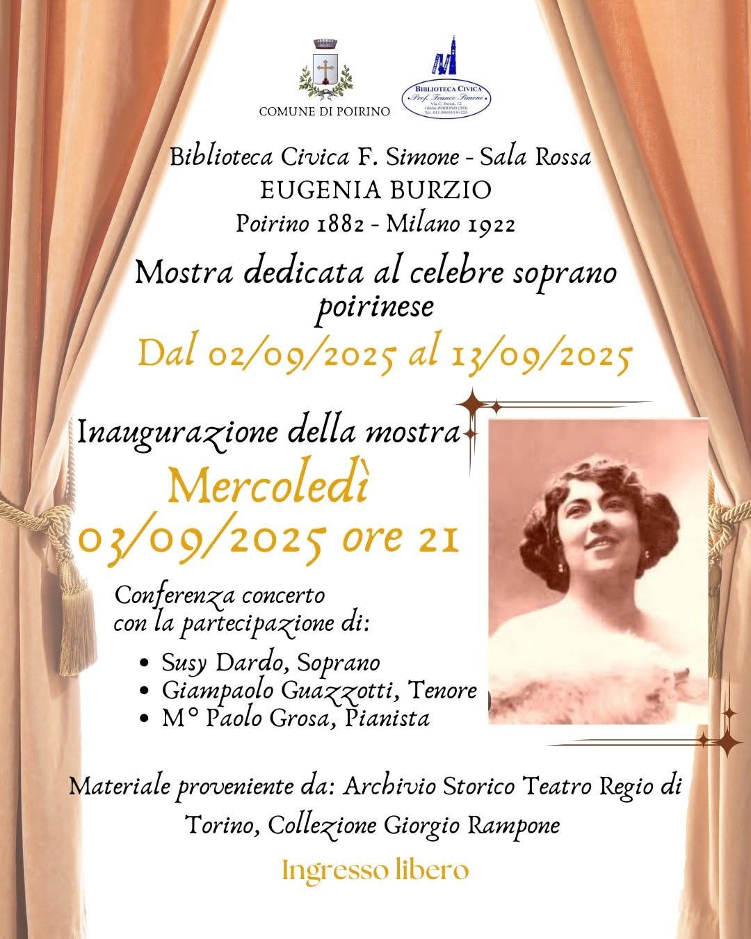 POIRINO. Dal 2 al 13 settembre MOSTRA dedicata a EUGENIA BURZIO celebre soprano Poirinese