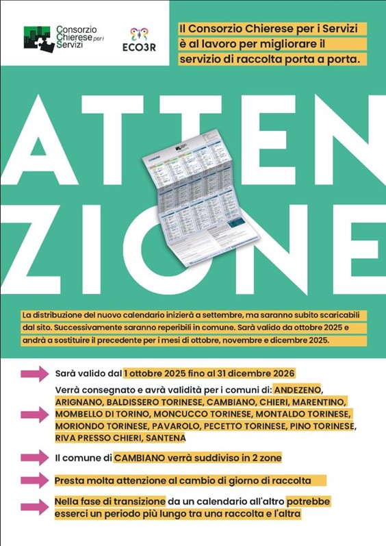 Il Consorzio Chierese per i Servizi (CCS) rinnova in anticipo i calendari della raccolta rifiuti, che avranno validità dal 1° ottobre 2025 al 31 dicembre 2026.