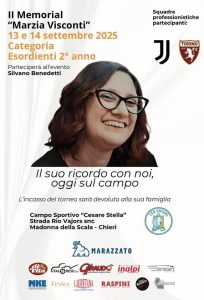 Il 13 e il 14 settembre al campo sportivo “Cesare Stella” di Madonna della Scala avrà luogo il secondo Memorial, dedicato alla chierese Marzia Visconti, che ci ha lasciato dopo una lunga e penosa malattia.