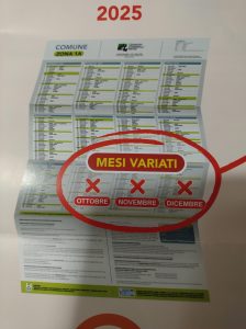 “Dall’inizio della raccolta differenziata porta a porta in Chieri che, se non erro risale al lontano 2002, la programmazione delle tipologie di ritiro è sempre stata la stessa. La cittadinanza si era abituata anche se con qualche comprensibile difficoltà a variazioni di ritiro in vista a giorni di festività ma, bene o male, si era consolidata una consuetudine che, anche senza il cartaceo annuale, la memoria dei singoli aveva recepito. Oggi, astutamente presentato con( la dicitura: ‘per migliorare il servizio”, ci si informa attraverso un aggiornato calendario in distribuzione che dal prossimo mese di ottobre tutto cambierà. In quest’ ultimo periodo abbiamo assistito a raccolte di carta con tappeti di tale tipologia lasciata sul suolo e non recuperata, come previsto contrattualmente e stipulato tra Consorzio ed ETAmbiente, contenitori raramente ri-posizionati al loro posto in modo corretto o peggio in altri casi tristemente sbattuti sui marciapiedi impedendone il regolare transito pedonale ed altre sistematiche mancanze operative. Oggi si esordisce chiedendo alla cittadinanza di resettare abitudini ventennali di conferimento rifiuti, all’insegna di un dubbio, imminente “miglioramento del servizio”. Innovare è certamente lecito ed a volte necessario ma la credibilità del servizio reso, le tante segnalazioni di inadempienze più volte rilevate e comunicate, nonché il discutibile operato di certi addetti al medesimo andrebbero decisamente presi in seria considerazione, prima di illudere che, di fatto, il servizio offerto possa, come discutibilmente si afferma, esser migliorato. Soltanto con il tempo certi slogan potranno risultare o meno credibili, nel frattempo verificheremo costantemente.”