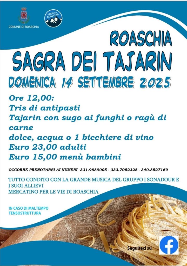 ROASCHIA Domenica 14 settembre “SAGRA DEI TAJARIN”.