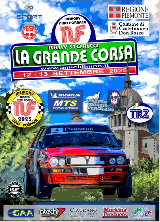 Chieri, 11 settembre 2025 – Nonostante la mancanza del rally di regolarità a media, l’edizione 2025 de La Grande Corsa si presenta con un soddisfacente numero di equipaggi iscritti e con una qualità che lascia presagire una gara di alto livello. Sessanta sono gli iscritti nel rally storico proposto da “Gli Amici di Nino” in collaborazione col Club della Ruggine, avente validità per il T.R.Z. della Prima Zona, per il Memory Fornaca con coefficiente maggiorato a 1,5 e per il Michelin Trofeo Storico. Sarà inoltre messo in palio per il terzo anno consecutivo un premio speciale in memoria di Giorgio Vergnano, indimenticata figura legata al rally e al Memory Fornaca; il trofeo sarà assegnato all’equipaggio che realizzerà il minor scarto nelle prove speciali numero 2 e 5 “Albugnano”. Tornando agli iscritti, a quelli in gara nel rally storico si aggiungono altri tre equipaggi con le auto classiche, ovvero quelle costruite dal 1993 al 2000 compreso per un totale di sessantatrè vetture.